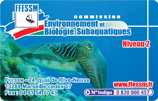 C’est le deuxième niveau en Biologie Subaquatique. Il exerce son activité au sein d’une Commission Départementale et au sein des clubs. C’est le deuxième et dernier niveau de perfectionnement en tant que plongeur : l’apprentissage de méthodes d’observation et d’analyses en plongée, l’approfondissement de la connaissance des grands groupes, des rapports des êtres vivants entre eux et avec leur milieu, protection de l’environnement...