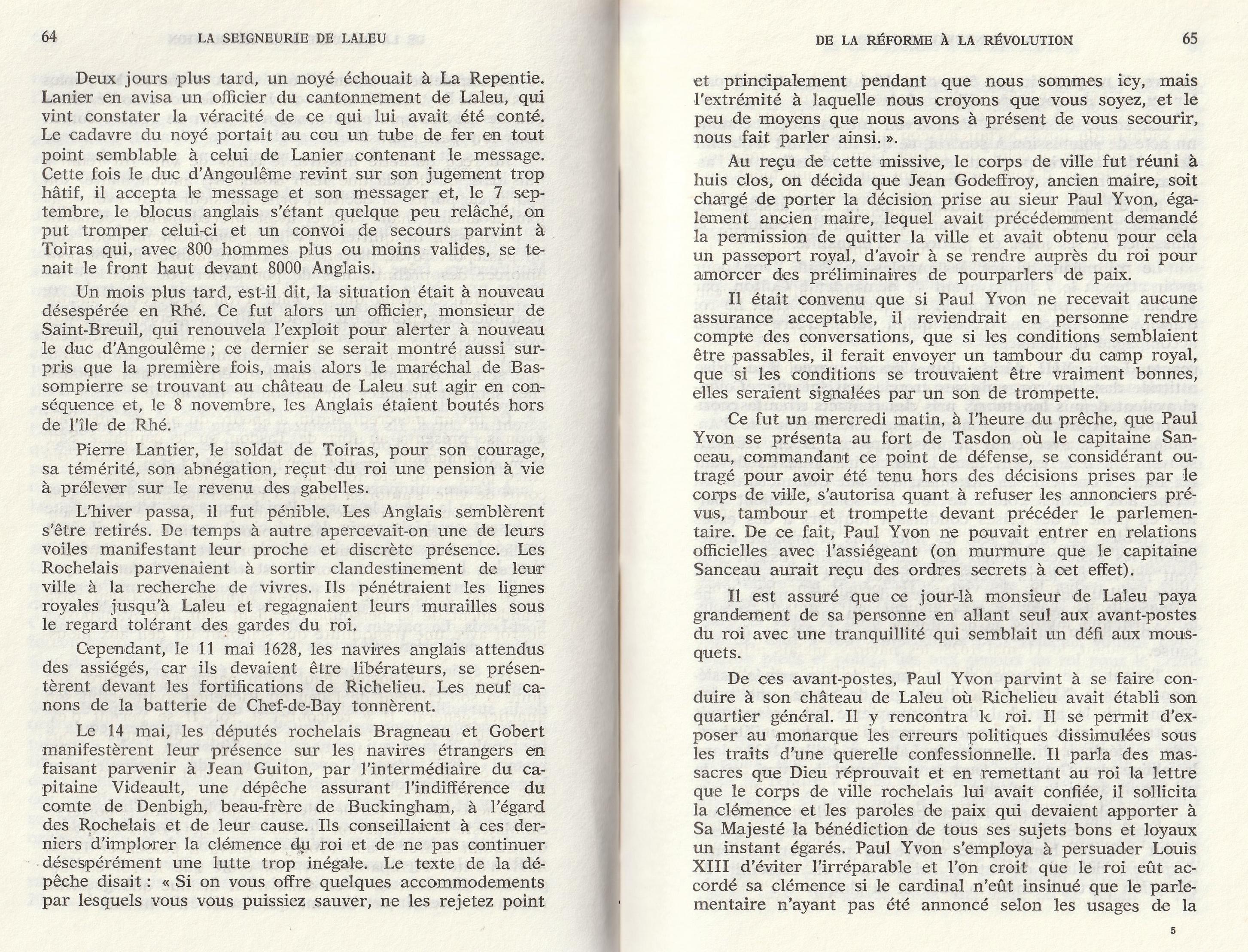 Nous avons des ancêtres bien plus méritants, prenez le temps de lire l’extrait du Livre de H. Simoneau paru en 1983 aux Editions Rupella, : La seigneurie de Laleu. Il rapporte une Traversée qui a eu lieu ... une certaine nuit de fin août 1627, pendant le siège de La Rochelle. Pour transmettre un message des troupes du Maréchal Toiras, assiégées par les anglais à Saint Martin de Ré, trois soldats partirent du Fort de La Prée pour joindre le duc d’Angoulême à Fort- Louis. Un seul parvint à la Plage de la Repentie, sain et sauf.